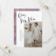 Uma maneira única de anunciar a mudança de planos no dia do casamento. Este novo salvamento da data design apresenta um script de caligrafia moderno junto com sua incrível foto. A parte traseira da placa apresenta um padrão rosa-ouro iridescente contra um fundo lavanda. Você pode personalizar facilmente suas informações pessoais de escolha. Veja as opções de cor de fundo em: Ok, Mudança de Coleções de Planos