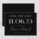 Personalize este elegante design preto e branco chic, salve a data para ter sua data de casamento, nomes e detalhes.