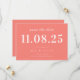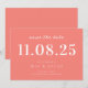 Personalize este casamento mínimo de design de chic, salve a data com todos os seus detalhes em cor rosa-coral.