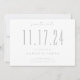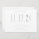 Um simples cartão moderno. Personalize este design branco e preto para ter a data do seu casamento, nomes e detalhes.