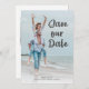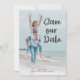 Casamento moderno, na moda e divertido Salve o cartão com fotos de Data com uma fonte de script de pincel fofo. Adicione fotos à frente e à parte traseira deste cartão.