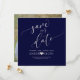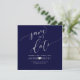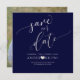 O script de caligrafia moderna PixDezines salva a data em prata falso (folha faux) com cor azul de fundo marinho DIY. Os designs dinâmicos PixDezines permitem editar qualquer elemento neste modelo de convite. Copyright © 2017 PixDezines.com™ e PixDezines™ em zazzle.com. Todos os direitos reservados.