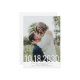 Cartão de Save the Date de casamento 5x7 vertical com um design de tipografia simples e moderno com data em fonte fina e grande sobreposta à sua foto que você carrega no modelo e digita seus nomes e local e data do casamento para um design rápido e fácil que funcionará com qualquer tema que você escolher posteriormente. As cores de fundo e as fontes são editáveis para combinar com seu esquema de cores, e você pode adicionar mais informações ou fotos adicionais no verso.