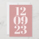 Estilo mínimo moderno para convidar seus convidados para salvar sua data de casamento com este elegante design tipográfico, com sua data em grandes números empilhando de cima para baixo da página em rosa pálido sobre fundo branco e sendo repetido do outro lado contra um pano de fundo rosa empoeirado. Na frente, uma pequena e simples tipografia de cinzas é sobreposta em cima de cada um dos números com seus detalhes. O texto é facilmente personalizado, incluindo os números de fundo que se alterarão simultaneamente de ambos os lados. Você também pode mudar as cores do texto e do plano de fundo para melhor se adequar ao seu esquema de cor do casamento, se quiser através da opção personalizar mais. Se precisar de ajuda com isso, por favor, me mande mensagem.