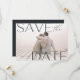 Anuncie sua data de casamento em estilo inesquecível com esses cartões salve a data elegantes e modernos, com uma foto horizontal ou paisagística de cheio com "salve a data" sobreposta em letras negras suaves nos cantos. Sua data de casamento aparece dentro da letra D, com seus nomes e local de casamento junto. Personalize as costas com detalhes adicionais, como o seu site de casamento.
