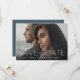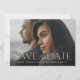 Anuncie sua data de casamento em estilo inesquecível com esses cartões salve a data de fotos elegantes e modernos, apresentando uma foto horizontal ou paisagística com "salve a data" sobreposta em letras brancas ao longo da base. Seus nomes, data do casamento e local do casamento aparecem em letras modernas. Personalize as costas com detalhes adicionais, como o seu site de casamento.