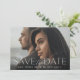 Anuncie sua data de casamento em estilo inesquecível com esses cartões salve a data de fotos elegantes e modernos, apresentando uma foto horizontal ou paisagística com "salve a data" sobreposta em letras brancas ao longo da base. Seus nomes, data do casamento e local do casamento aparecem em letras modernas. Personalize as costas com detalhes adicionais, como o seu site de casamento.