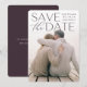 Anuncie sua data de casamento em estilo inesquecível com esses cartões salve a data elegantes e modernos, com uma foto vertical ou retraçada de cheio com "salve a data", sobreposta em letras ricas em ameixa, por cima. Seus nomes, data do casamento e local do casamento aparecem junto com a letra moderna. Personalize as costas com detalhes adicionais, como o seu site de casamento.