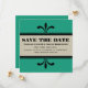 Rico elegante e sofisticado Art Deco Salve o Anúncio de data no bege verde esmeraldo e de espuma marés com uma deco de arte floresce e pontilhada e um esquema de cores com duas tonalidades. Esta design moderna é perfeita para anunciar um casamento com tema de deco. Fácil de personalizar, basta adicionar os detalhes do casamento nos campos de texto fornecidos. Clique em "Personalizar" para encontrar opções adicionais de personalização.