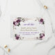 Design único com uma moldura de ouro falso adornada com flores roxas, ameixa, rosa em aquarela, buquês de folhas verdes; em um fundo de papel de aquarela. No verso, coroa de flores em forma de coração e iniciais. Use a ferramenta Personalizar para adicionar suas informações. Itens correspondentes podem ser encontrados na minha Coleção Floral Rosa Roxo.