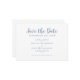 Cartões salve a data elegantes e delicados em azul e branco tendenciosos são clássicos, formais e eternos. O design romântico sem fronteiras permite que você escolha facilmente a forma de papel para o lançamento do seu noivado. Duas decorativas florescem cada uma contendo um solteiro cardíaco delicadamente com o nome da noiva e do noivo. Para obter resultados ideais, pule as linhas e capitalize como na amostra. Envie perguntas ou solicitações personalizadas para invitationsuites@gmail.com