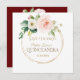 Design de cartão elegante, com cor de água rosa, pincel, buquês de flores creme, uma falso cinta dourada quebrada, falso dourado QUINCEAÑERA. Use a ferramenta Personalizar para adicionar suas informações. Veja, também, minha coleção de Quinceañera e 16 festas.