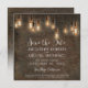 "Anúncio de Save the Date do Depósito Industrial de Tijolo com Luzes Edison Antigas." Anuncie suas núpcias próximas com o tema da sua celebração - uma mistura perfeita de charme urbano rústico e iluminação romântica. O fundo é áspero, desgastado, envelhecido e envelhecido tijolo antigo em tons profundos e ricos com luzes Edison penduradas. Direitos autorais, Audrey Jeanne Roberts, todos os direitos reservados.