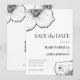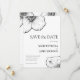 Crie uma ótima primeira impressão em seus convidados com este cartão de Save The Date formal, floral e monocromático. Um grande título lê SAVE the DATE, ou personalize para dizer SAVE OUR DATE. Uma fonte pequena, cursiva e clássica especifica: para as núpcias de. Esta linha é seguida por duas sub-títulos em letras maiúsculas que soletram os nomes da noiva e do noivo. 💍 Um bloco de linhas em fonte serifada atemporal soletram o dia e o ano, seguido pelo local do casamento. Uma linha adicional informa que um convite formal de casamento será enviado posteriormente. Todo o texto é personalizável para refletir seus dados nupciais. 🌸 Desenhos elegantes de arte de linha fina de pétalas de flores de Clematis montana enquadram o anúncio na frente. O verso do cartão postal oferece um código QR personalizável que se vincula ao seu site. Abaixo estão as iniciais da noiva e do noivo, seguidas pelo endereço do seu site de casamento soletrado. Personalize e adapte todas as linhas conforme necessário. Dois desenhos artísticos diferentes de flores de Clematis criados à mão adornam o topo do cartão botânico e moderno. Fique atento