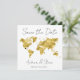 Ideal "Save the Date" modern card for your destination wedding. Faux gold foil map of the World. Place the heart wherever you want