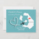 Um divertido save the date para casais que se casam em Santorini com um mapa de silhueta branca em azul-turquesa com doces corações de amor vermelhos e muito fácil de personalizar com seus nomes e mensagem pessoal