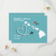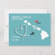Um divertido save the date para casais que se casam no Havaí com um mapa de silhueta branca no azul-turquesa com corações de amor vermelhos e muito fácil de personalizar com seus nomes e mensagem