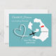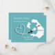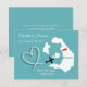 Um divertido save the date para casais que se casam em Santorini com um mapa de silhueta branca em azul turquesa com doces corações de amor vermelhos e muito fácil de personalizar com seus nomes e mensagem pessoal