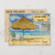 Este "Destino Paraíso", Save the Date frente e verso é feito de bela arte colorida à mão por Audrey Jeanne Roberts. Ele apresenta exuberante detalhe de Folha de Grama Palappa com cadeiras adirondak e toalhas de praia na praia com um oceano tropical lambendo a areia. Há um carimbo postal com a data e o local de destino com uma borda envelhecida e vintage. A paleta de cores é azul aqua, bege, creme e marrom. Também disponível com um fundo verde musgo suave, verde mais escuro e um fundo azul aqua mais escuro. Este cartão Save the Date pode ser facilmente personalizado. VOCÊ TAMBÉM PODE GOSTAR: CONVITES DE CASAMENTO: