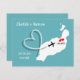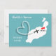 Um divertido save the date para casais que se casam em Lanzarote com um mapa de silhueta branca em azul turquesa com corações de amor vermelhos e muito fácil de personalizar com seus nomes e mensagem