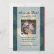 Salve a Data com Foto! Celebre o seu casamento com um tema de pavão artístico e único com este lindo convite de casamento e conjunto de acessórios combinando. Apresenta arte luxuosa, rica e elegante com detalhes de penas de pavão nas cores azul cobalto, azul turquesa e verde celadão claro. Fundo em azul aqua escuro com lavagem antiga e desenho espiralado. 2010 www.CustomInvitesOnline.com