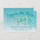 Envie um na moda "Salve a Data" para seus amigos e família para seu aniversário de 30 anos com este moderno brilho azul lacrimogêneo que cai do lado de um fundo gradiente teal.