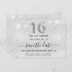 Uma garota e moda Salve o cartão de data para uma doce festa de aniversário 16, 16. Um fundo com aspecto fino de prata decorado com pingos de brilho sujo, aparência de pingar de tinta. Personalize e adicione uma data e um nome. Letras pretas coloridas. O texto: Salvar a Data é gravado com um script de estilo com letra de tendência grande.