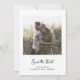 Este casamento simples e na moda, preto e branco salve o cartão de data com tipografia de script vintage e caprichosa com sua foto e um código QR digitalizável para seu site de casamento ou detalhes.