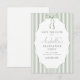 Eleve a celebração da sua formatura com nossos cartões de save the date de formatura chiques e modernos. Com listras verdes sofisticadas e um doce laço de fita verde em aquarela, esses convites mesclam elegantemente estilo e elegância.