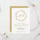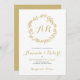 Dourada coroa floral sobre um fundo branco, um convite de festa de casamento personalizável.