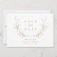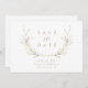 Folhas botânicas ilustradas com a mão rústica elegante, com moderna escrita de tendências e fonte clássica em ouro e branco, Simples e sofisticado. cartões salve a data excelentes para casamento clássico moderno, casamento formal simples, casamento elegante de jardim botânico. Ver todas as peças correspondentes na coleção