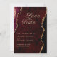 Elegante Glitter Burgundy Agate Salve o cartão Data. Chic Script Salve a data em burgundy e design de gemstone dourado.