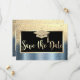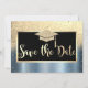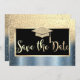 Reserve A Data Dourada Graduação Azul Com Largura Salva A Data