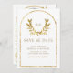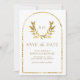 Reserve A Data Dourada Laurel Wreath Deixa Casamento Branco