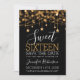 Dourado e Black Sweet 16 Birthday Sparkly String Luzes de anúncio "Salve a Data" com endereço da festa e detalhes de RSVP.