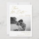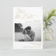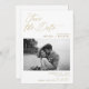 Esta foto de ouro moderna salva o cartão de data apresenta uma foto das recém-casadas, em breve, aliadas a uma elegante escrita romântica dourada.