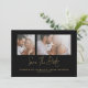Clássico 2 Fotos Douradas Casamento Preto Salve a Data. Disponível digitalmente e impresso. Ouro clássico e elegância negra. Basta substituir os dois exemplos de fotos por seus próprios favoritos. Salve a Data em um script de conjunto de na moda e personalize facilmente o resto do texto. Adicionar seu código QR ao seu site de casamento no verso faz com que esta seja uma opção conveniente para seus convidados verem todos os detalhes. Basta alterar o URL de exemplo com seu próprio e seu código QR será gerado automaticamente.
