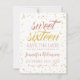 Elegante e moderno Sweet 16 ( Dezesseis ) Festa de aniversário "Salvar a Data" com o motif de pontos de Confetti Glitter, Dourado e cor-de-rosa, e nome personalizado e texto de detalhes. Fácil de usar e fácil de personalizar. Peça a sua hoje!
