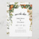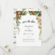 Casamento bonito, elegante, moderno e boêmico guarde as cartas chatas para sua ocasião especial! Borda de folhagem de folha aquosa em folhas verdes escuras e claras, com fruta de laranja natural e minúsculos quadros de flores no topo do seu casamento, exceto os detalhes da data. Seus nomes são apresentados em fontes modernas no topo, e reverso da carta para revelar um padrão de folhagem de folha verde no verso. Personalize seus detalhes de casamento, data, local e muito mais na frente.
