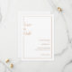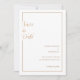 Anúncio de cartão de "Save The Date" islâmico muçulmano com modelo personalizável e imprimível que pode ser usado para anunciar o casamento do casal ou cerimônia de noivado. Cartão de cor marfim branco básico com uma fonte de escrita dourada clássica e limpa no topo. Minimalista. Moderno. Há uma moldura dourada delicada com as palavras "Save The Date" escritas no lado esquerdo e os nomes da noiva e do noivo escritos em letras maiúsculas, data e demais informações escritas no lado direito. Você pode personalizar todas as informações e editar o tipo, estilo e tamanho da fonte com a Ferramenta de Design. Material de papelaria de casamento. Her Line For Design Studio por Ayesha.