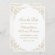 Este elegante casamento formal inspirado na vintage salve o cartão de data com o texto em letras douradas e fontes serif, enquadrado por um delicado motif vintage de ouro. O quadro é repetido no reverso.