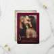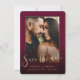 Burgundy Wine Red Dourado Script & Marble Photo Overlay Cartões salve a data são uma elegante tendência e tão chic, com uma camada de gradiente ombre escura para realçar o seu texto e uma letra de script de escrita manual dourada. Personalize-o com a sua fotografia. Mostrada em uma falsa folha de ouro. - Casamento Salve a data cartões com fotos personalizados! ~ Cheque meu compro para ver a suíte inteira para este design!