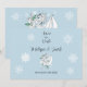 Um pequeno dragão branco senta-se entre rosas brancas contra um fundo azul-claro suave com flocos de neve delicados.