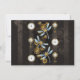 Marcadores e teclas antigas com engrenagens de ouro e latão, decoradas com libélulas mecânicas e boias em fundo castanho e listrado.