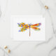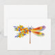 Pintura artificial, libélula floral em laranja e roxo contrastantes com papoila amarela, brilhante e florescente da Califórnia e flores silvestres azuis em fundo branco.