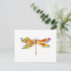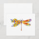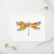 Pintura artificial, libélula floral em laranja e roxo contrastantes com papoila amarela, brilhante e florescente da Califórnia e flores silvestres azuis em fundo branco.