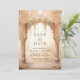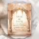 Amaze your guests with this elegant Indian wedding save the date featuring beautiful arches decorated with curtains and cream flowers.