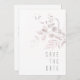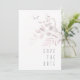 Arranjos delicados, folhagem com pequenos sotaques florais em tons suaves e sonhosos de creme, esticados e rosa com salpicos de burgundy e layouts únicos de design, fazem desta coleção uma emocionante, especialmente para casamentos de outono. O casamento Salvar o cartão de data mostrado aqui apresenta um quadro circular com efeito de folha, bordado por folhagem na face frontal e um arranjo de aquarela suave e desbotada no verso. Veja o link de coleção nesta página para ver todos os itens correspondentes neste belo design ou ID817 de pesquisa para ver outras peças e opções de cor para este conjunto.
