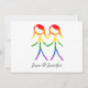 Este cartão de identidade apresenta uma design simples e bonita para anunciar o seu próximo casamento. O gráfico mostra duas mulheres, na forma de figuras elegantes de palitos, de mãos dadas. Os números são coloridos num belo arco-íris, simbolizando amor e diversidade. Este cartão é uma maneira maravilhosa de trazer um toque coeso e significativo para o seu papel de carta, ao mesmo tempo que fornece aos convidados uma maneira clara e elegante de marcar os seus calendários.
