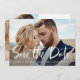 Este baleado e elegante cartão de ponto apresenta duas das suas fotos pessoais favoritas, com o tradicional roteiro branco manuscrito. Há também um código de QR digitalizável para que os convidados possam visitar seu site de casamento para obter detalhes sobre os convidados ou para RSVP. Um olhar simples e moderno que vai ajustado perfeitamente com o seu estilo!